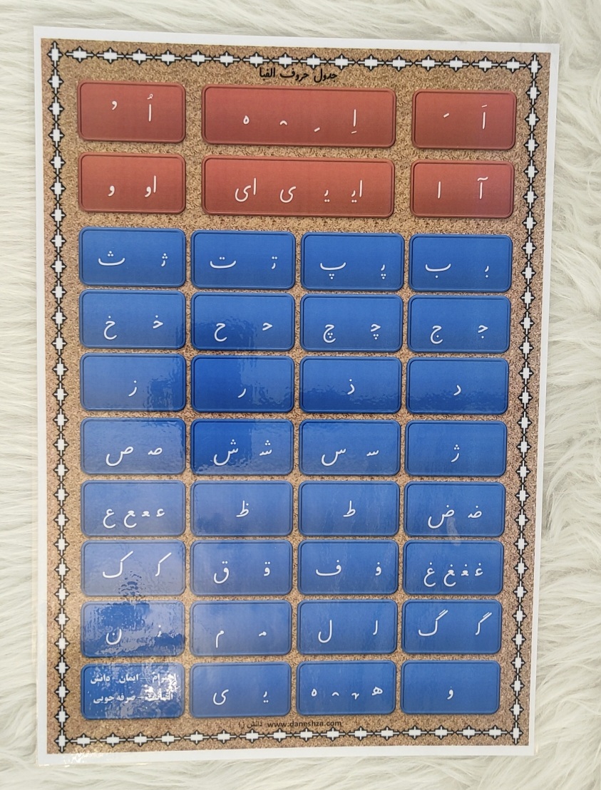 ابزار آموزشی جدول لمینتی حروف الفبا سایز a3