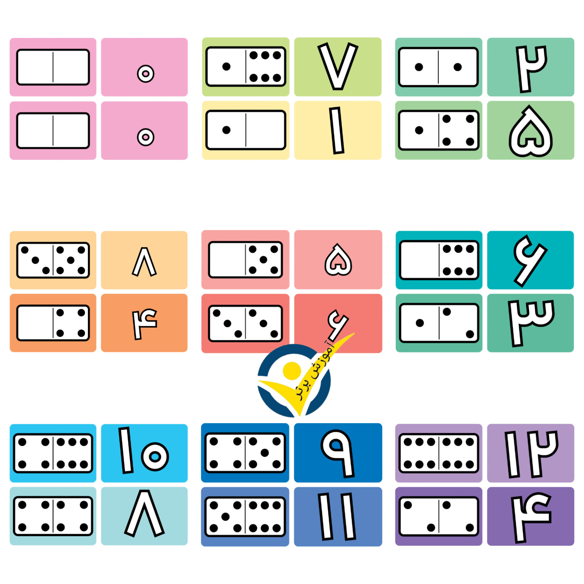 ابزار آموزشی بازی کارت های دومینوی اعداد مقوایی