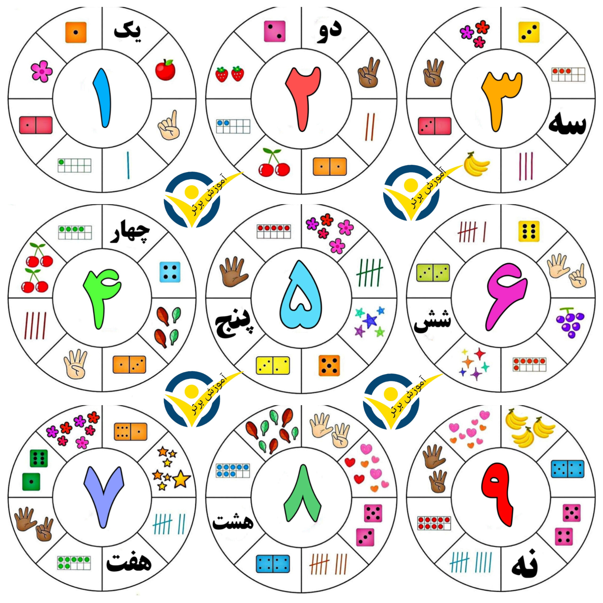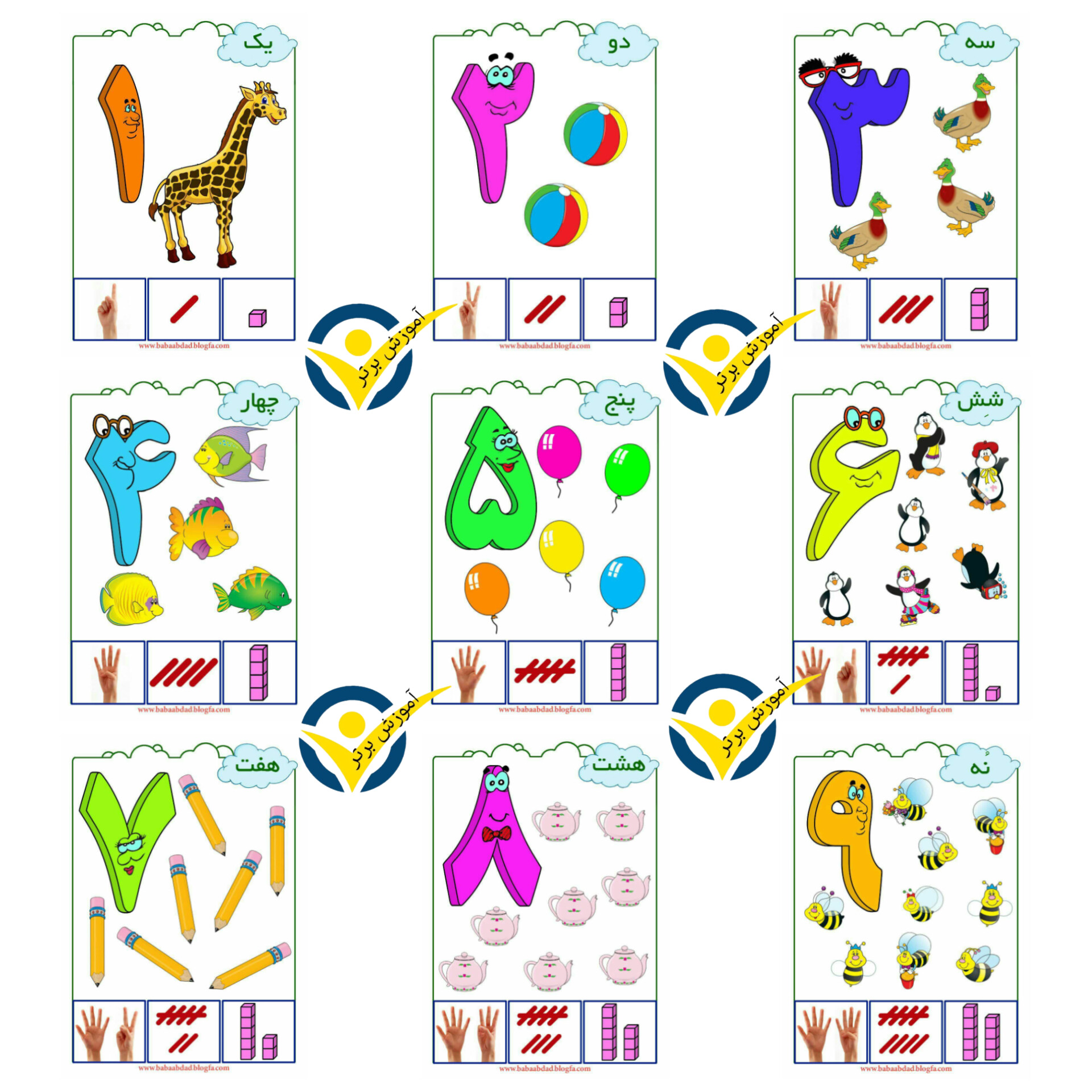 ابزار آموزشی لمینتی کارت معرفی اعداد ۱ تا ۹ ریاضی