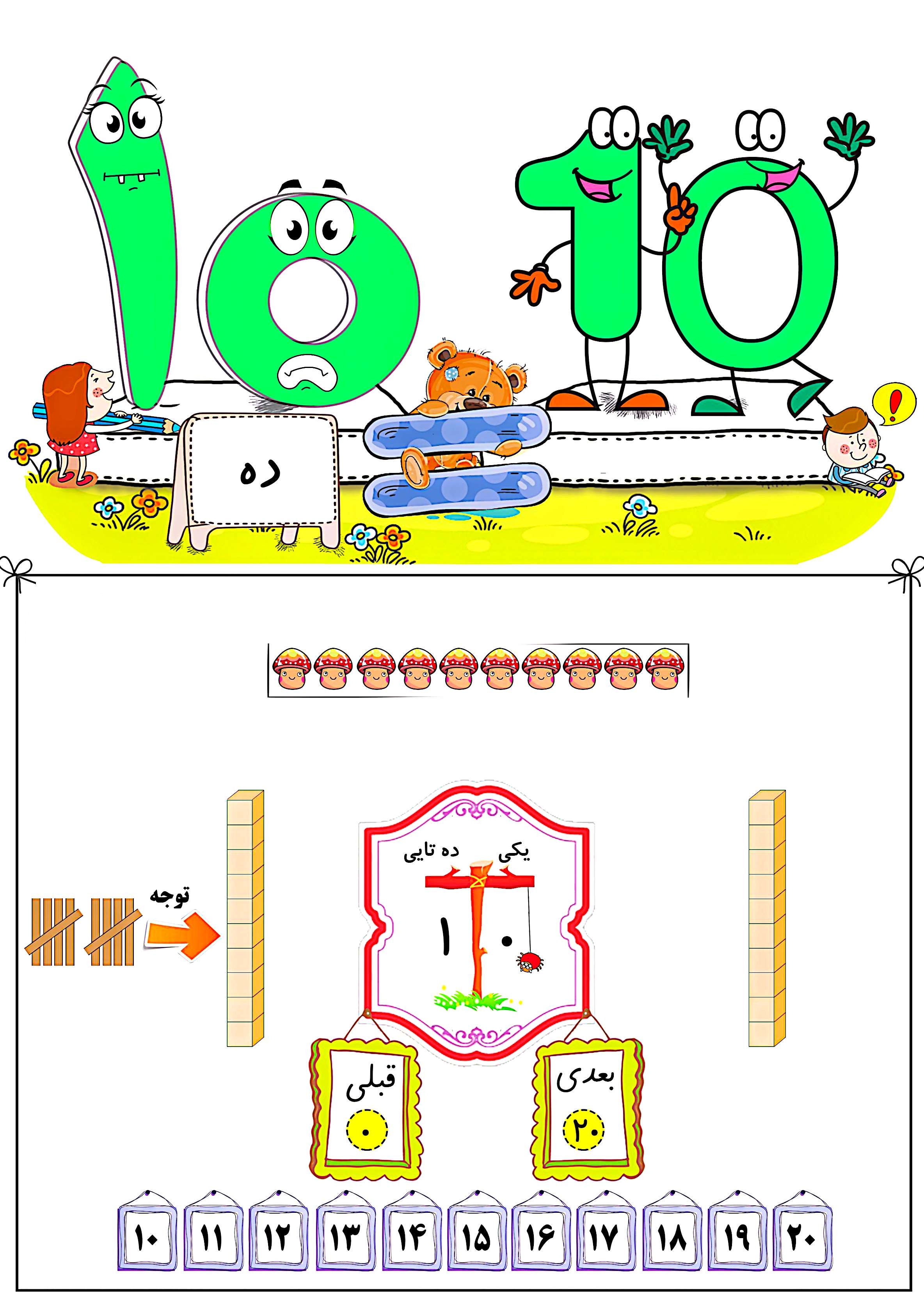 ابزار آموزشی لمینتی پوستر نگاره‌های ۱ تا ۱۰ فارسی کلاس اول
